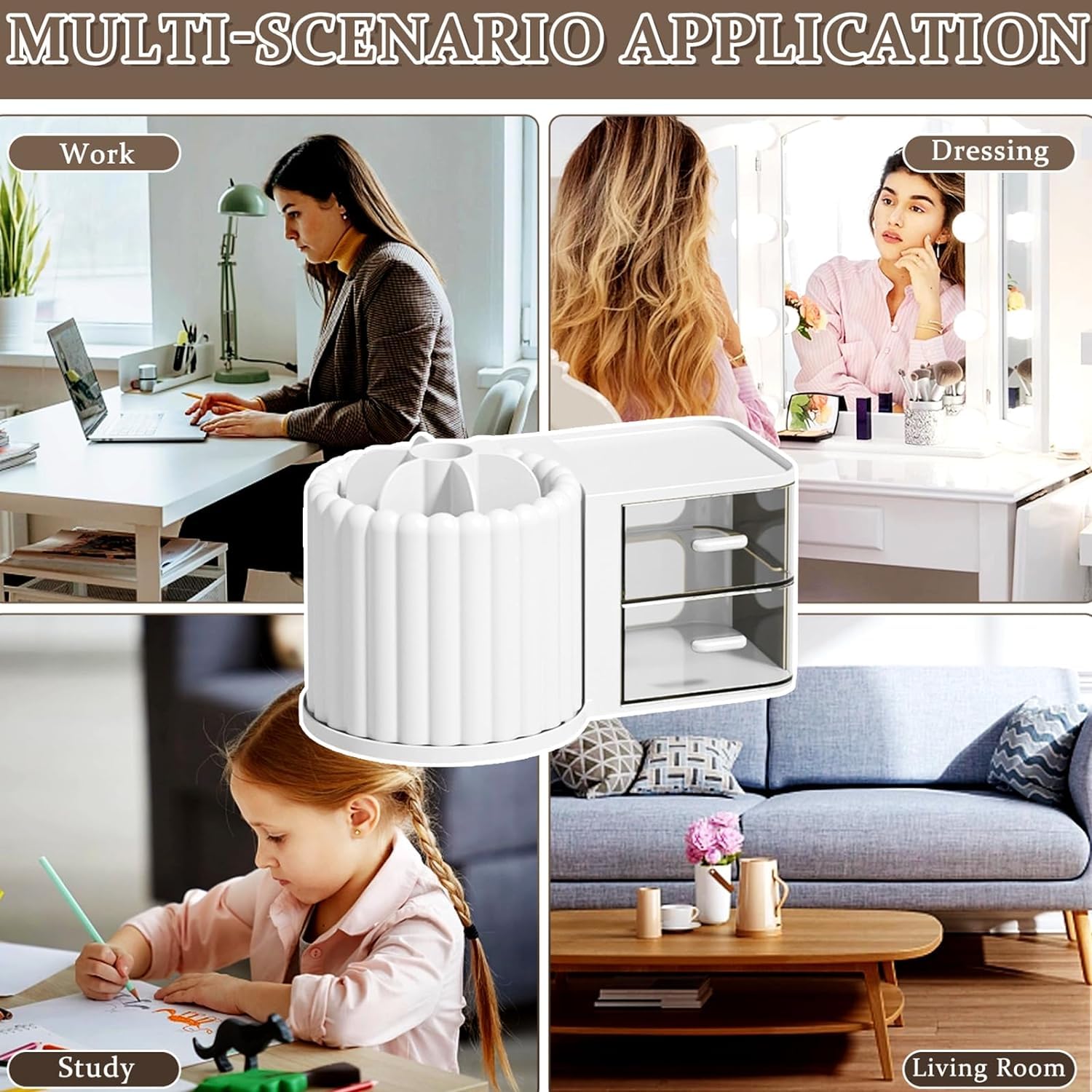 Rotating Pen Holder 360° Rotatable Multifunctional Desk Organizer Space-Saving Pen Stand for Office Home School White Compact Stationery Holder for Pens Pencils Scissors and Desk Supplies