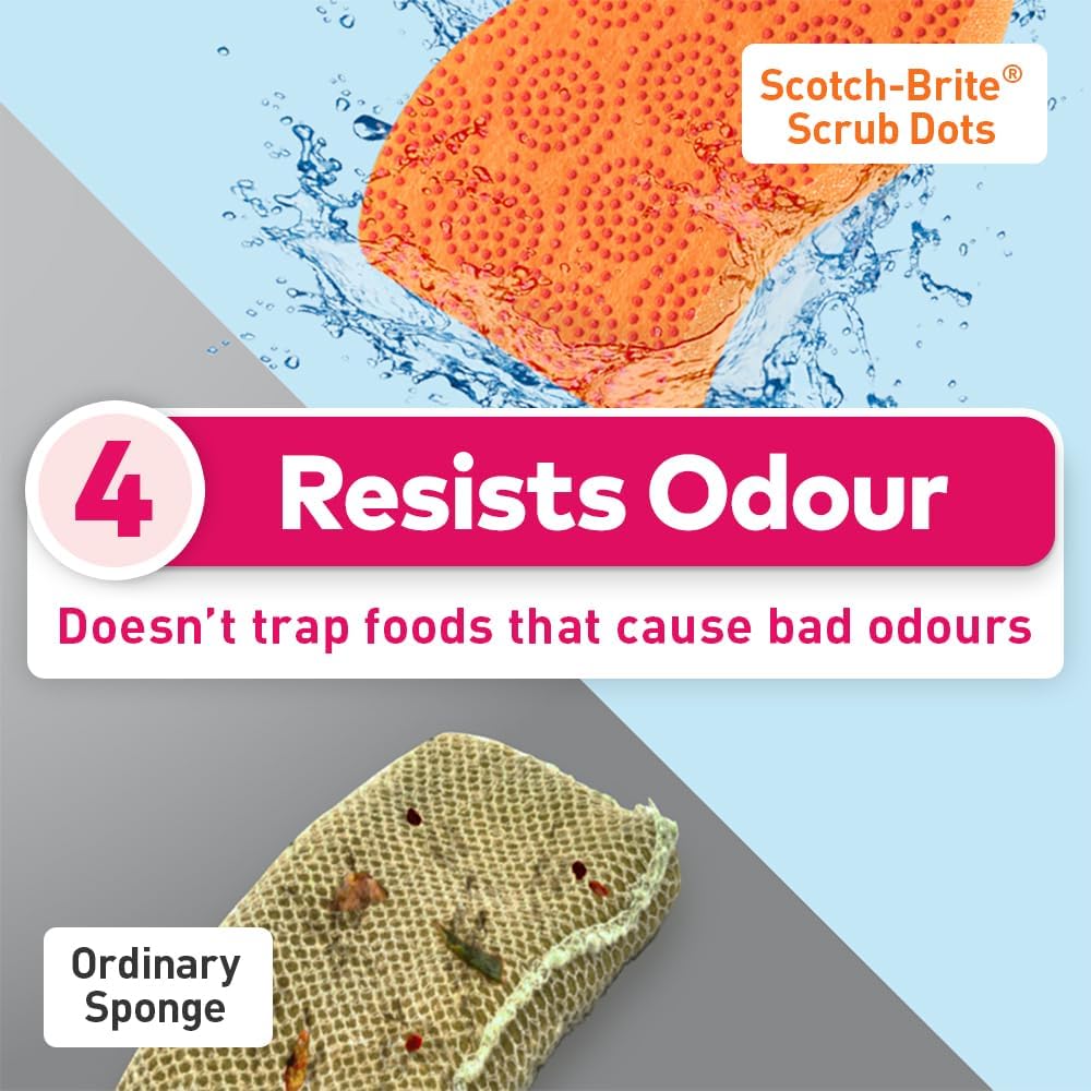 Scotch-Brite Scrub Dots Non-Scratch Sponge, Suitable for Ceramics and Non-Stick Ware, rinses Clean and Stays Odor Free (2 Pieces)