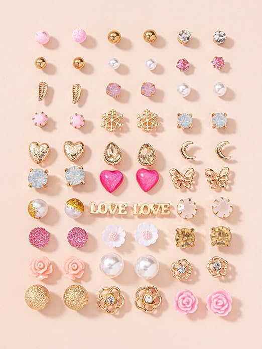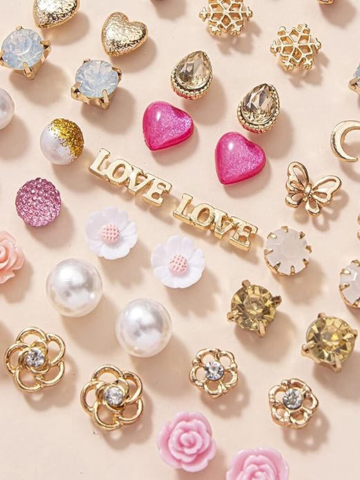 - 30 pairs combo of latest stylish design crystal peal stud earings