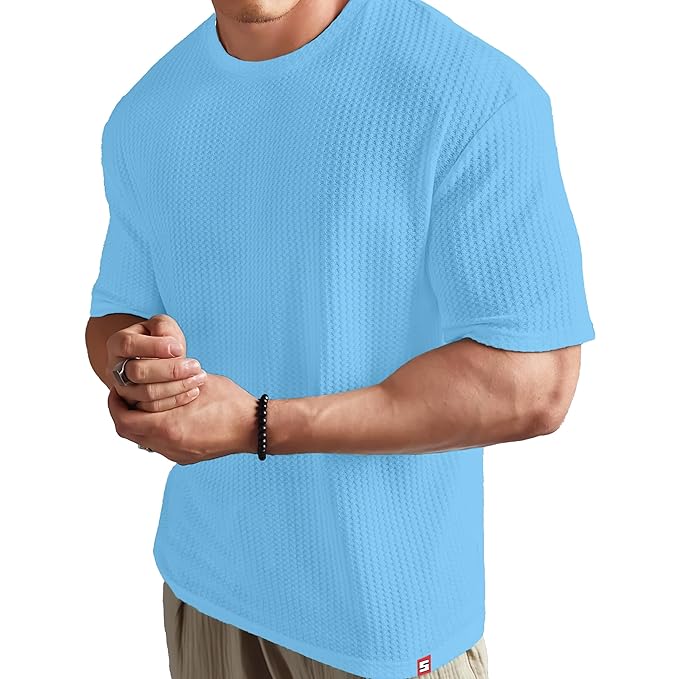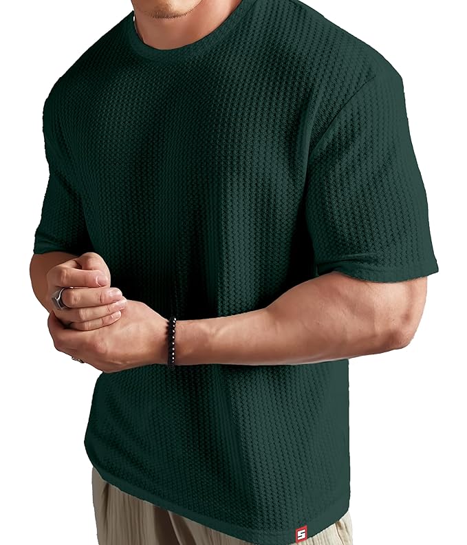 SHODOX® Men Oversized T Shirt Solid Dotted Design | Round Neck Loose Fit Drop Shoulder Casual Cotton T-Shirt for Men