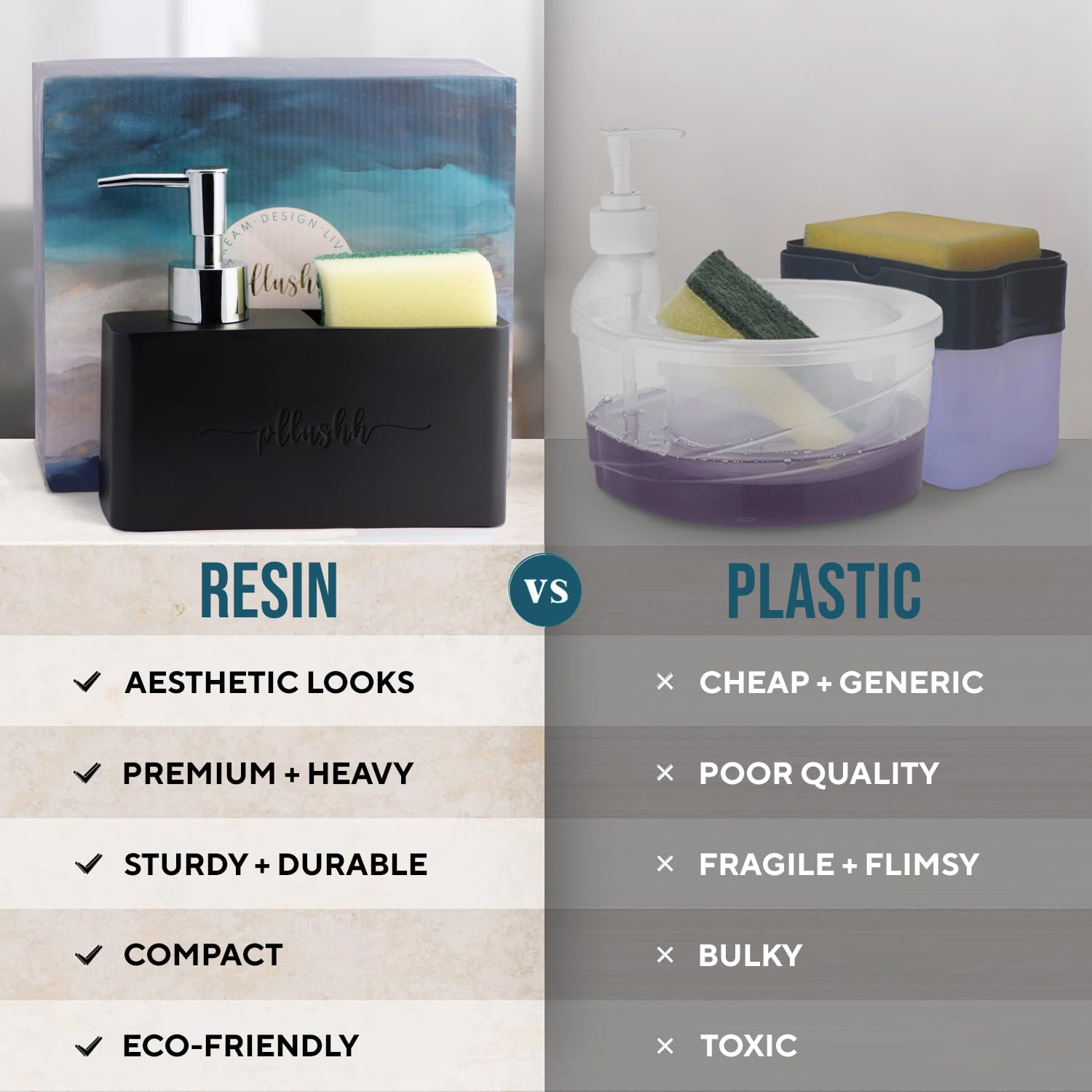 - Kitchen Sponge Holder keeps your sponges dry, while the dish soap holder for kitchen sink and kitchen soap dispenser for sink add convenience, and the kitchen dishwasher holder offers extra storage