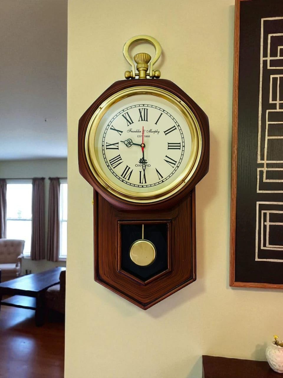 - Classic Vintage Design – Elegant wooden case with Roman numerals and brass-style accents adds timeless charm to any room
