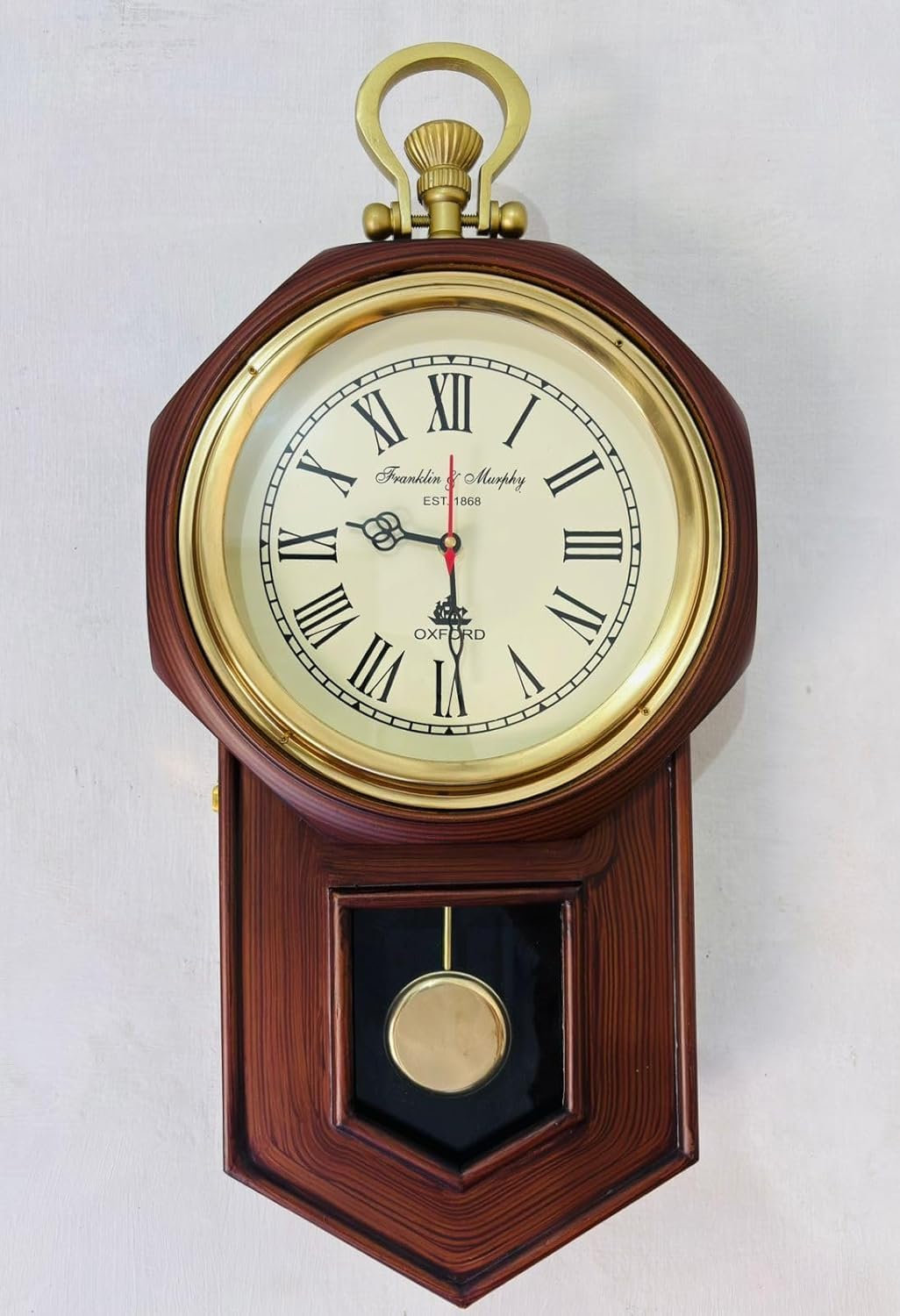 The Antique Attraction-Vintage Wooden Pendulum Wall Clock with Roman Numerals
