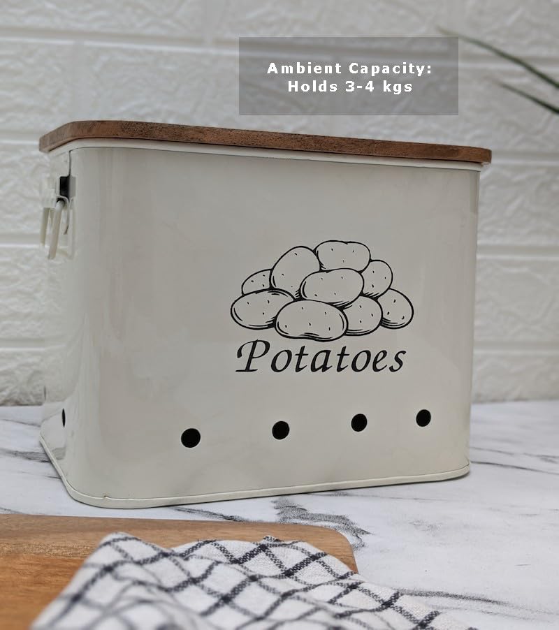 THE DECOR HOME’S Potato,Onion,Garlic Containers Kitchen Storage(Set of 3) (White/Lid), Wood;Metal
