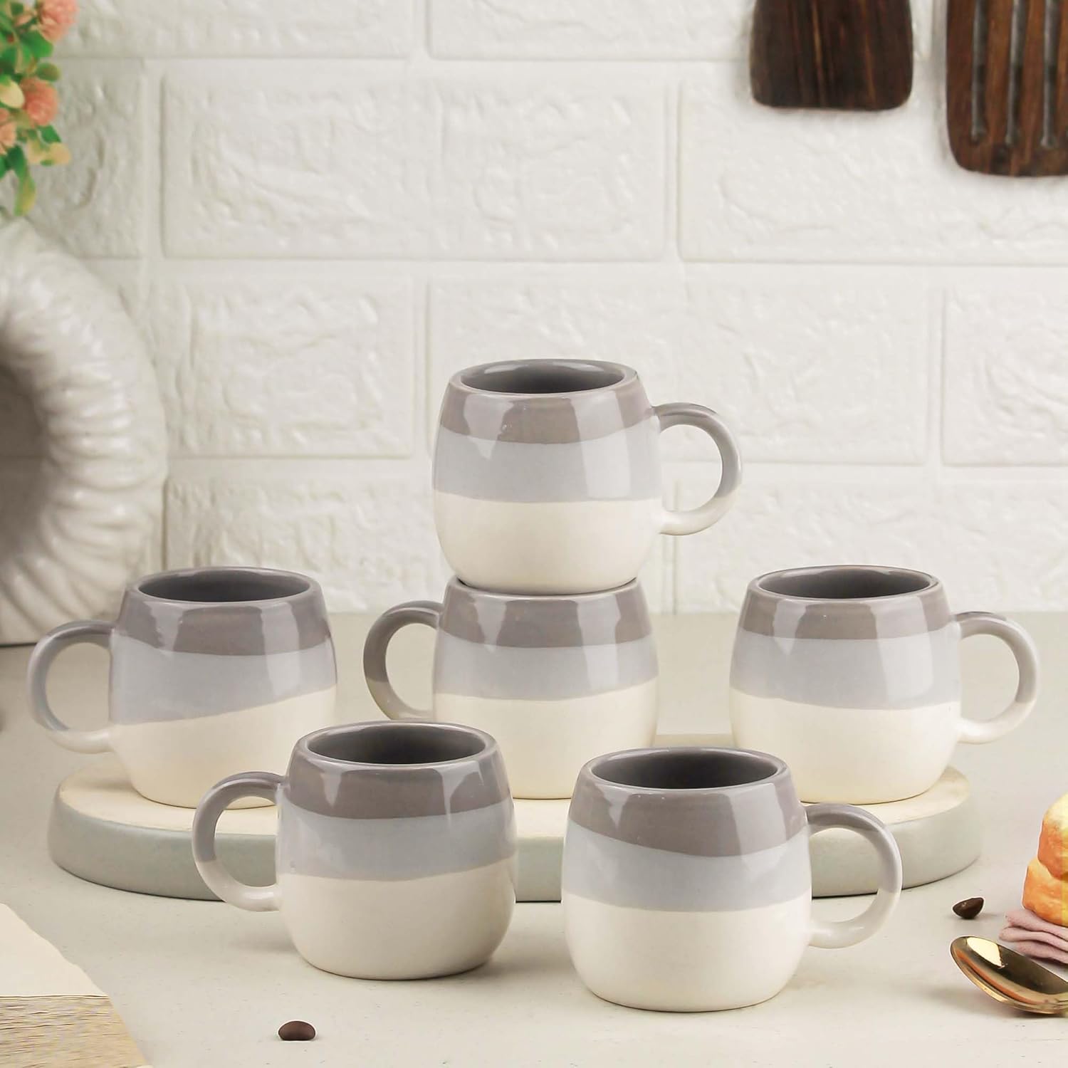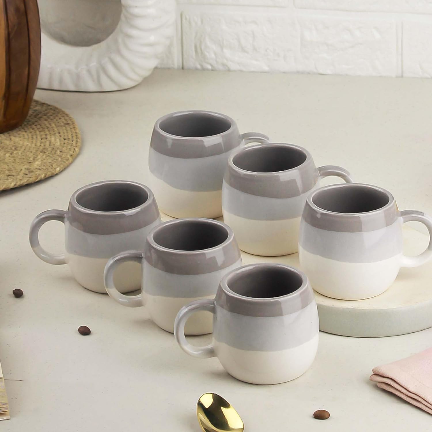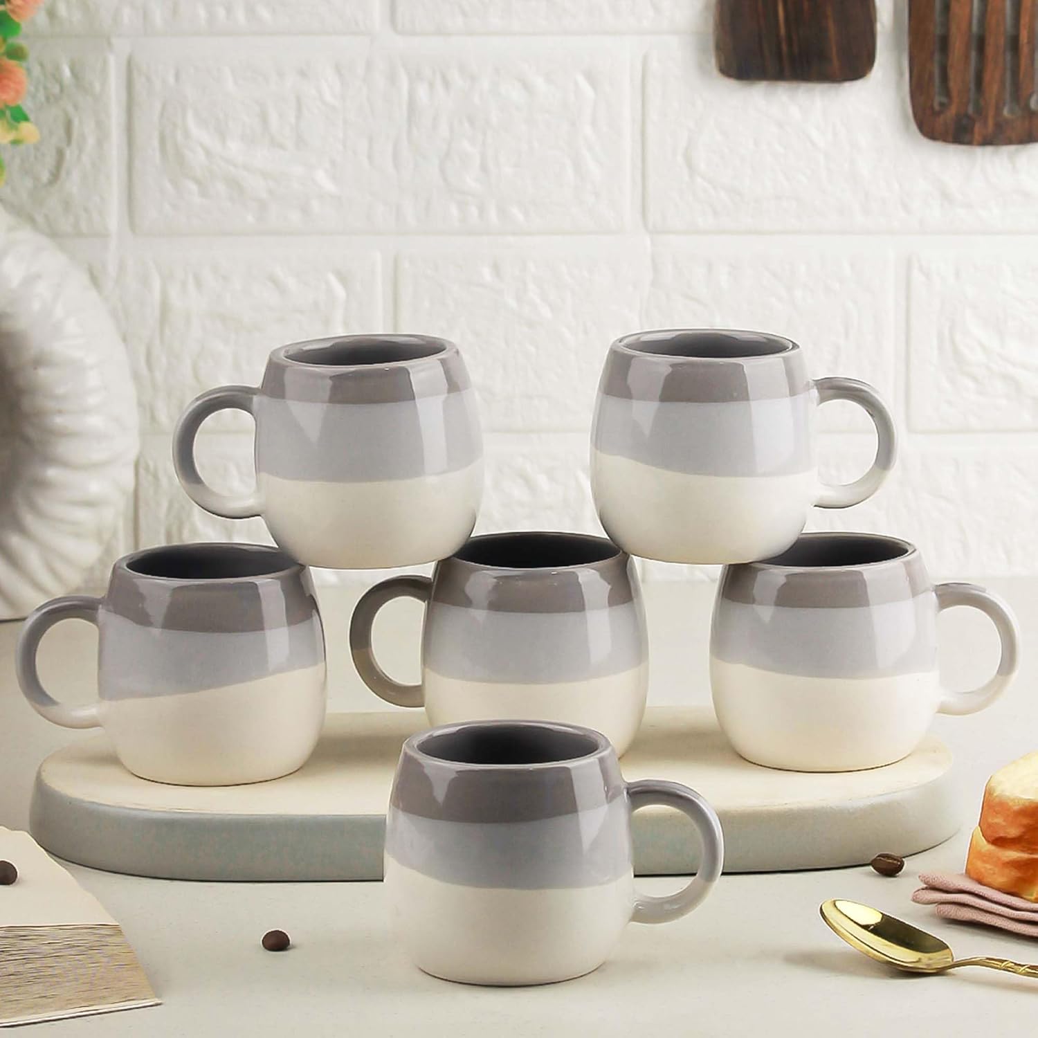 The Earth Store Tritone Grey Ovule Shape Cup Set of 6 for Tea, Microwave and Dishwasher Safe, Perfect for Every Occasion Capacity – 190 ml Each