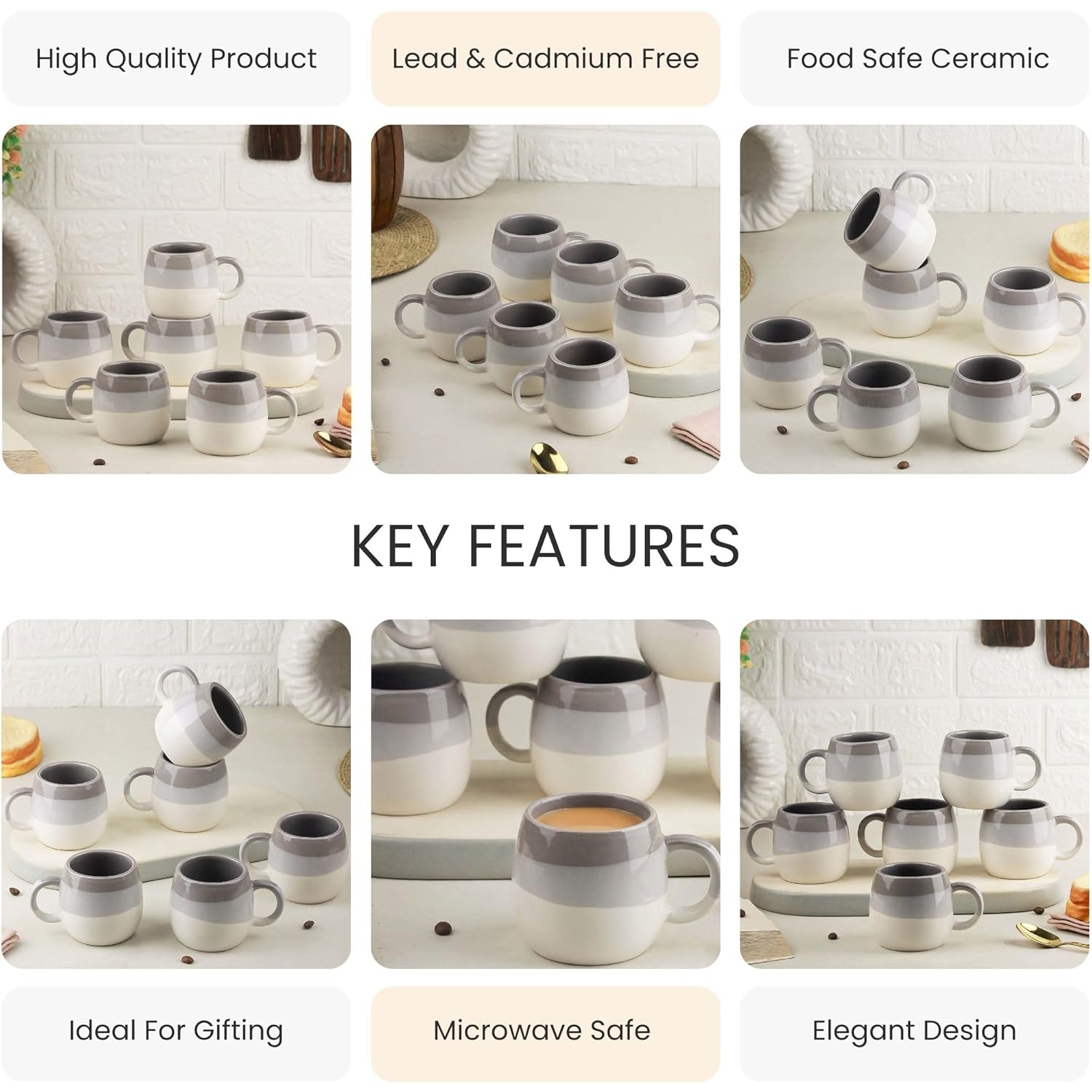 • Microwave and Dishwasher Safe: These cup set of 6 for tea has convenient features for easy use and cleaning.