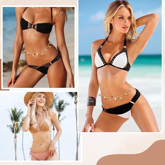 Waist Chain for Women with Shell & Starfish Charms – Sexy Belly Chain for Saree, Bikini, Crop Tops, Beachwear & Festival Outfits – Adjustable Body chain in Gold