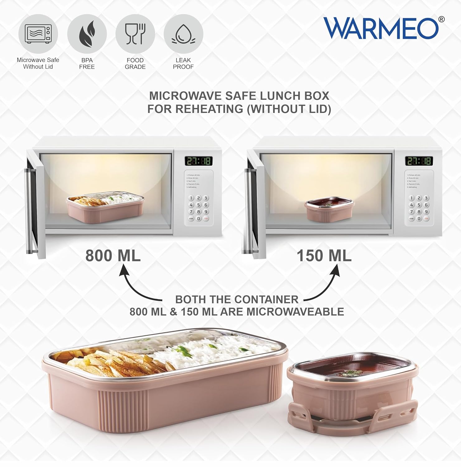 - ✅ “Microwave-Safe: Both the main lunchbox (800ml) and inner container (150ml) are safe for microwave use (without lid).