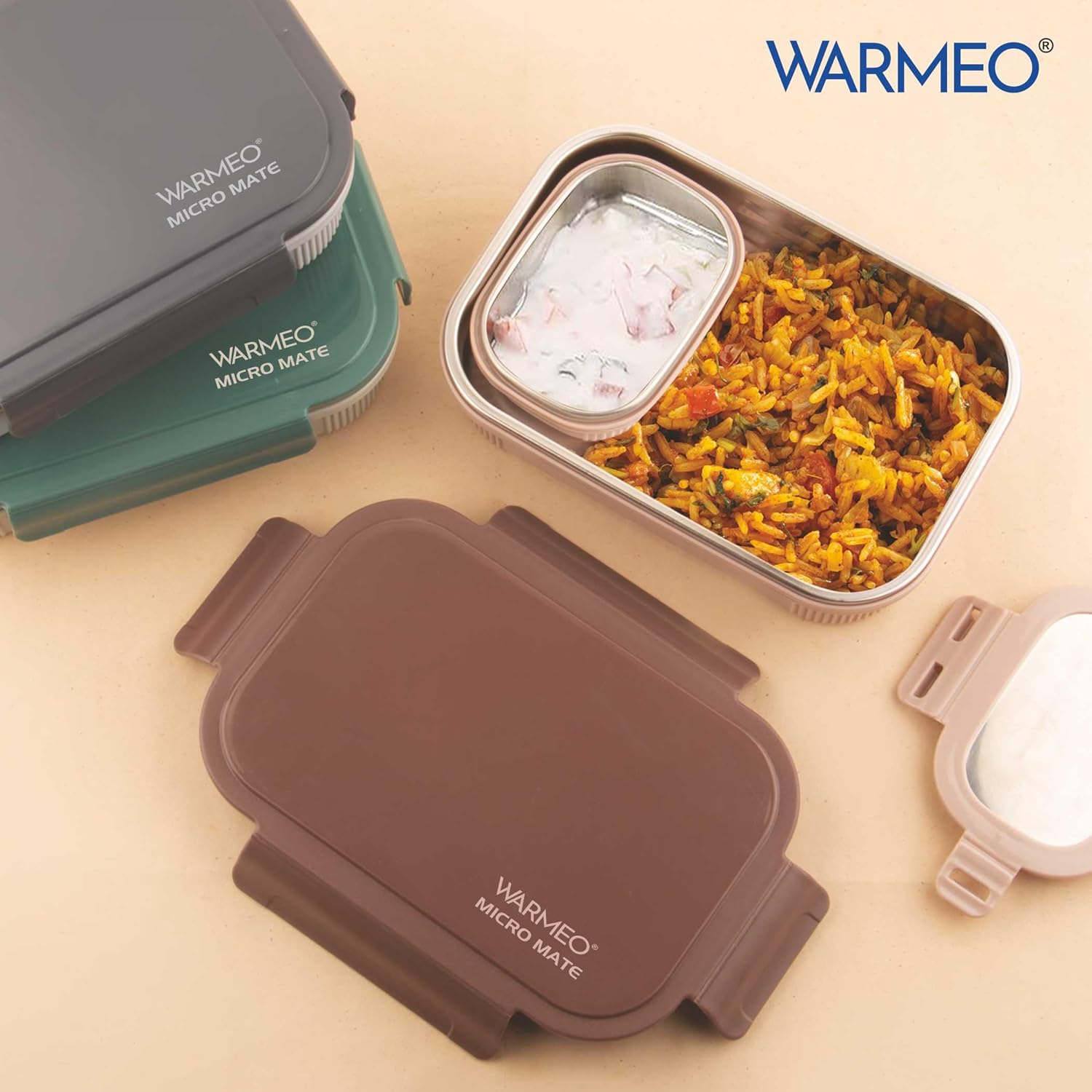WARMEO MICROMATE Microwave-Safe Stainless Steel Lunch Box, Bpa Free, Perfect for Office, School, Travelling, Combo(800ml+150 ml),Green