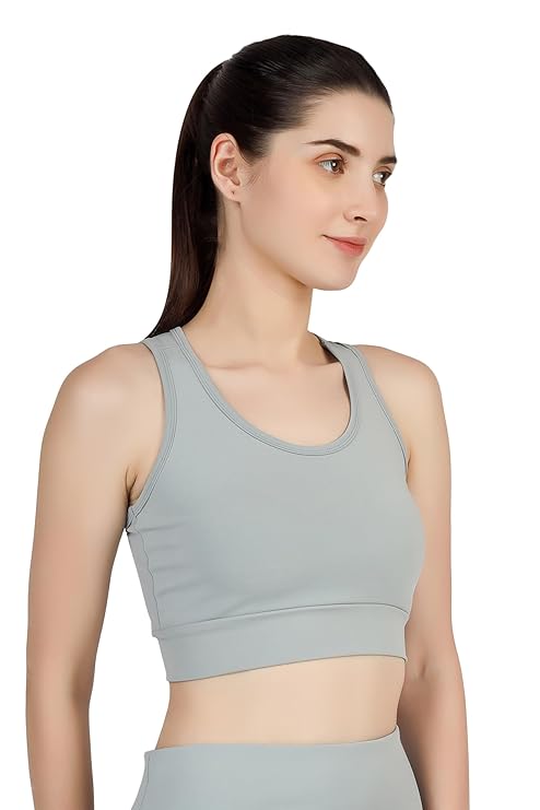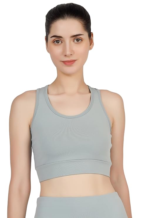 • 4. Stylish Racerback Crop Top – Trendy crop top sports bra with racerback design for flexibility and style, suitable for workouts, casual wear, or athleisure fashion.