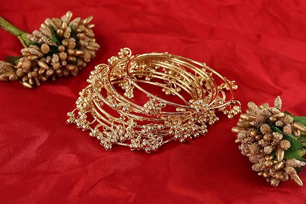 - Material: – Alloy Metal | Design:- Ghungroo Style | Color: – Golden | Size: – 2.4 Inches | Pack Of 8 Bangle